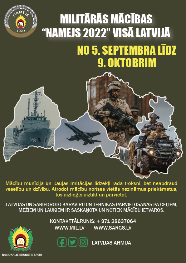 1. un 2. oktobrī NAMEJS 2022 ietvaros darbosies ZS 45.KNB zemessargi.