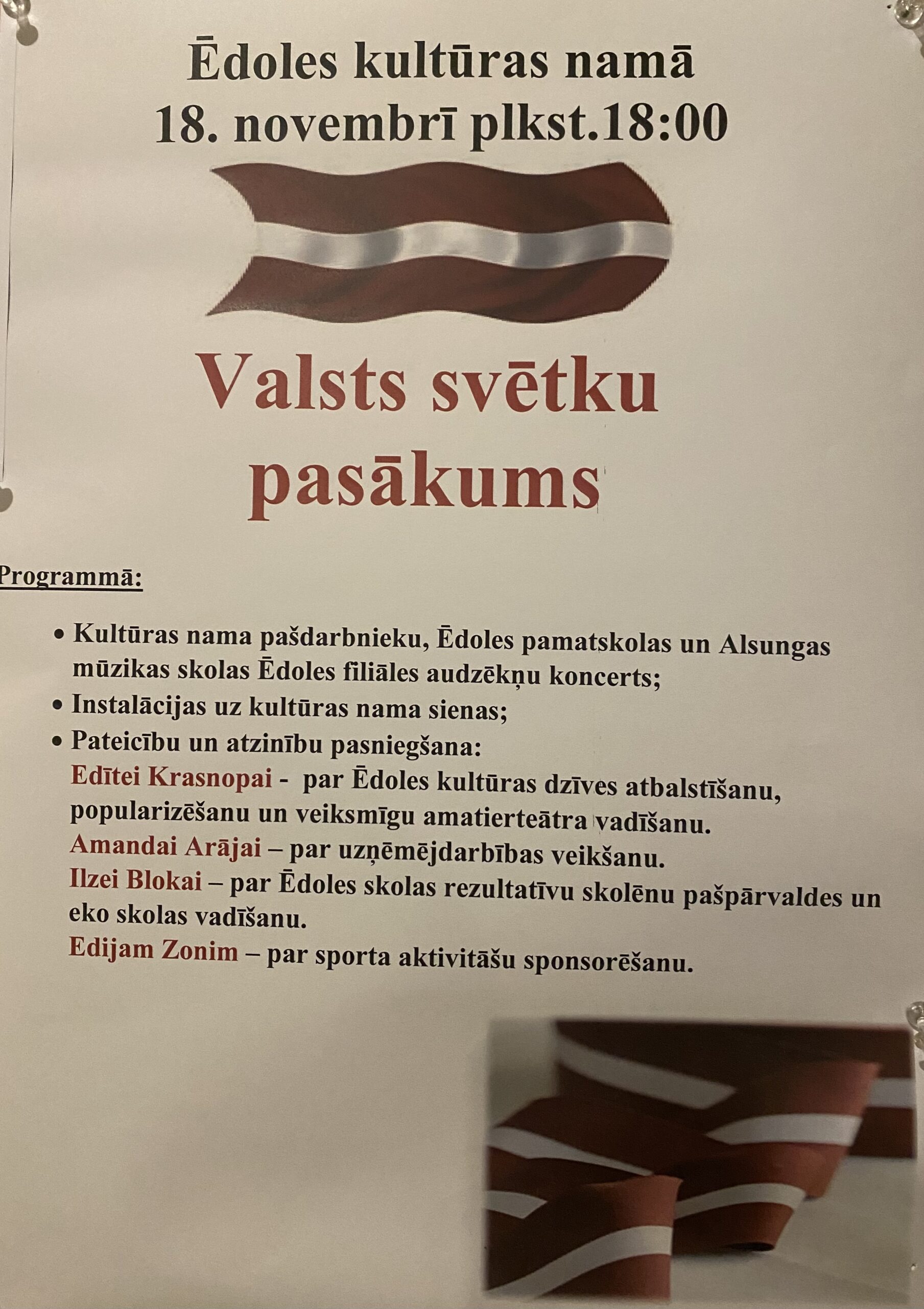 18.novembra pasākums Ēdoles kultūras namā.